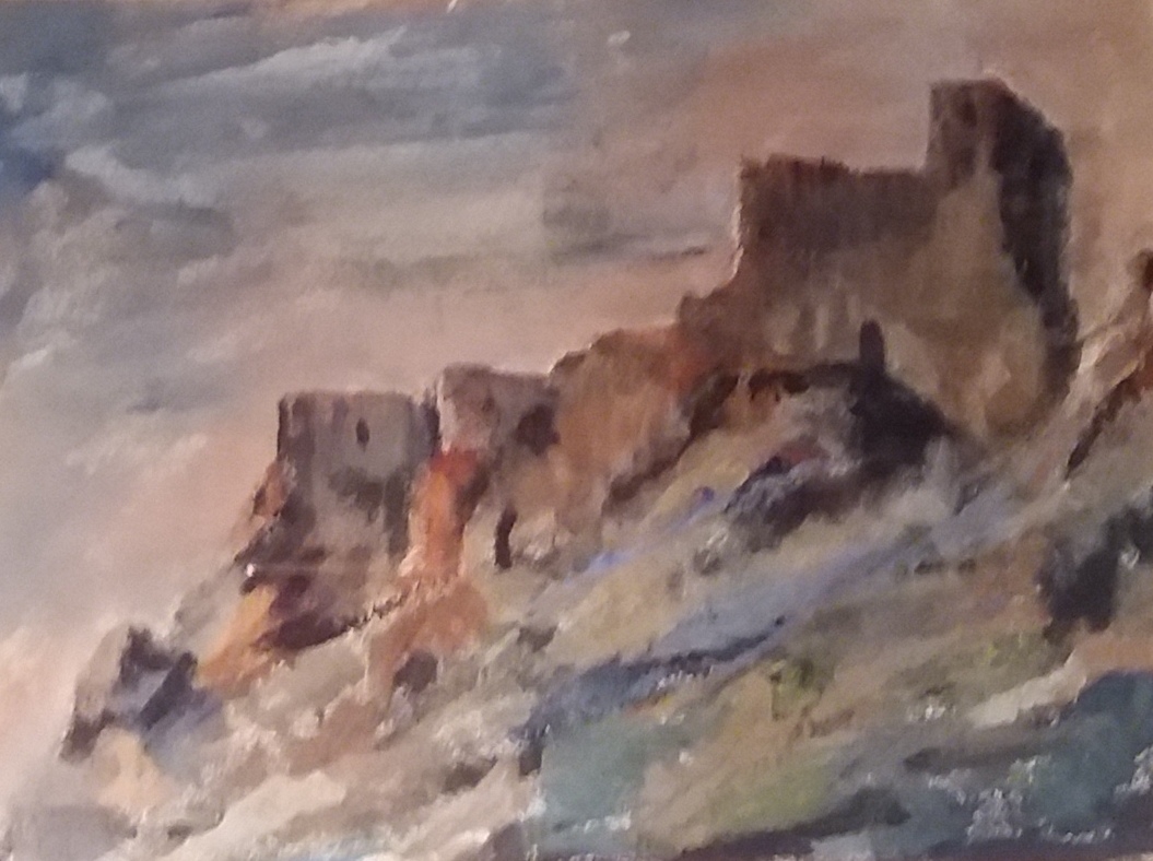 Se yergue sobre la roca la sublime fortaleza, la esbozó aquí con destreza el que muchos palos toca. Este castillo me evoca al castillo de su sueño, al de un pueblo malagueño que del Águila se llama, su recuerdo lo reclama y en enseñarlo me empeño. |
